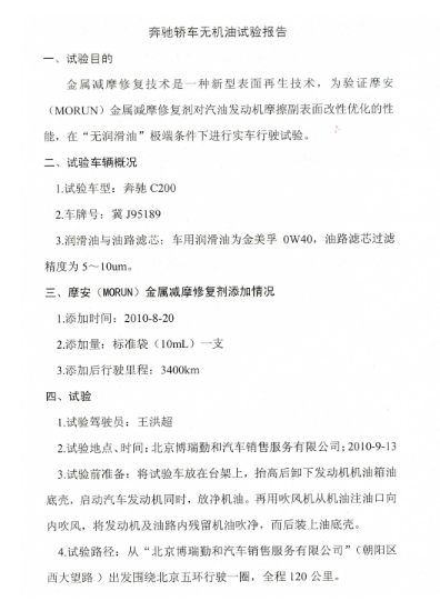 MAT奔驰无机油试验