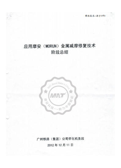 MAT技术在电力、铁路、汽车及工业制造等领域积累了大量的第三方实验报告与实车运用数据,多维度证实了技术的减摩、节能与自修复效果。